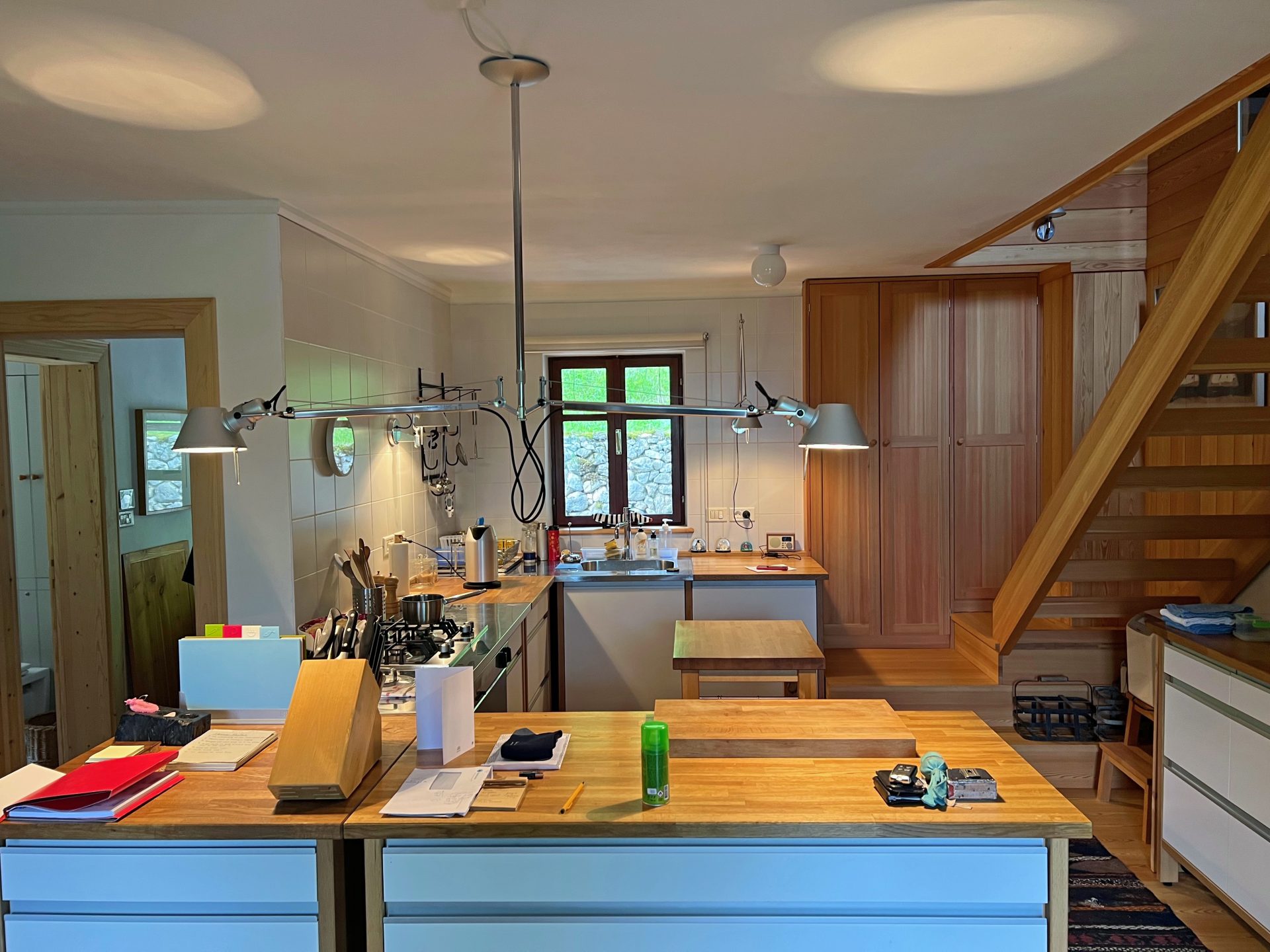 Preurejeno podstrešje in je čudovit prostor z izpostavljenimi lesenimi tramovi, visokokakovostnimi lesenimi tlemi in velikimi okni s čudovitim razgledom. V prostoru je velika jedilna miza in prostor za počitek.
