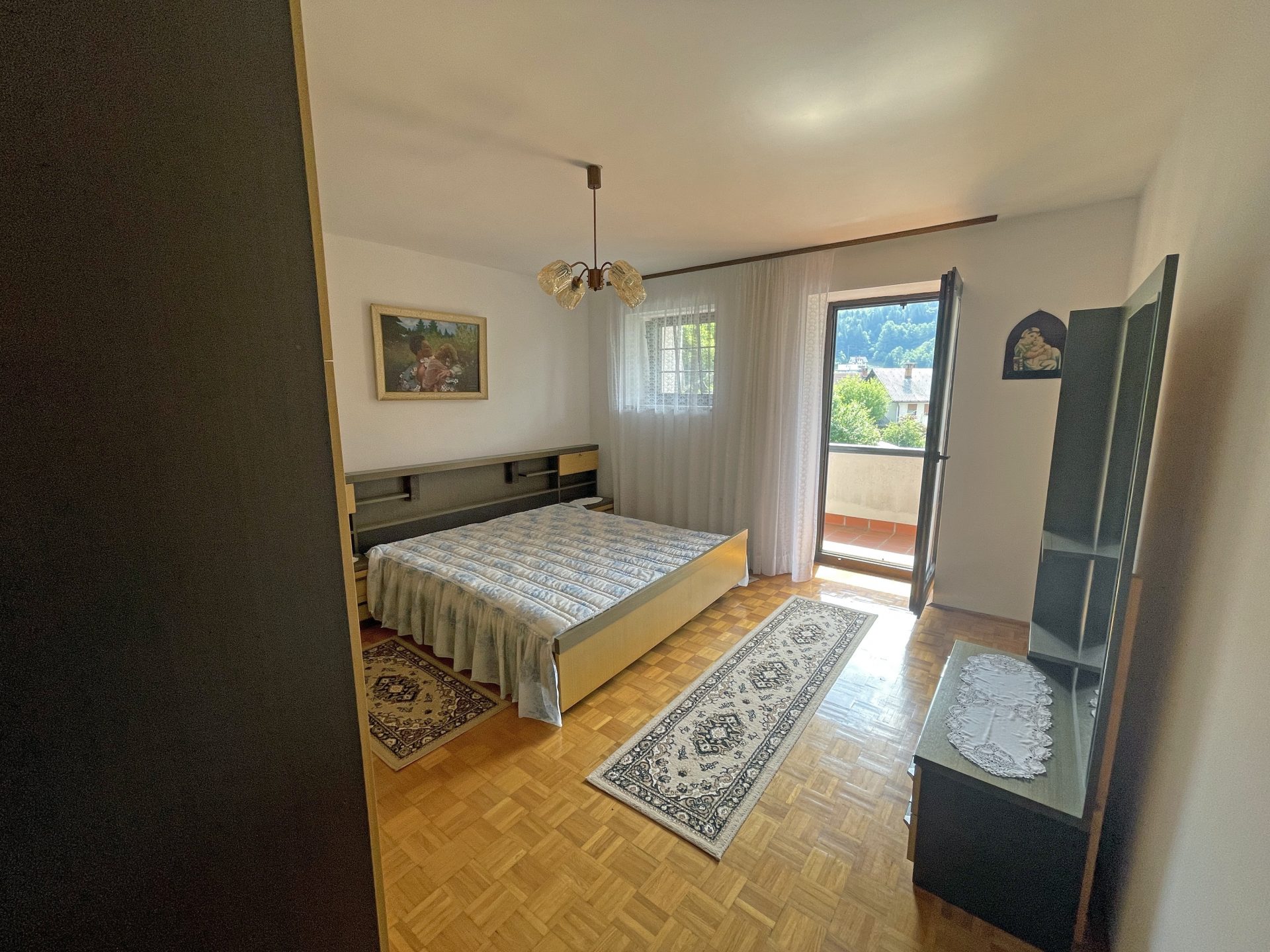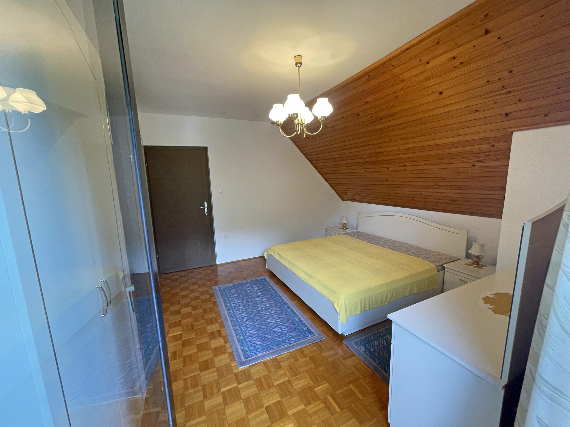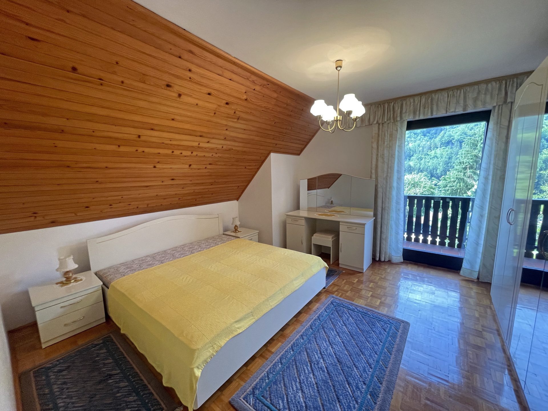 V nadstropju so 4 prostorne in svetle spalnice, balkon s prečudovitim razgledom, velika kopalnica in hodnik s stopniščem.