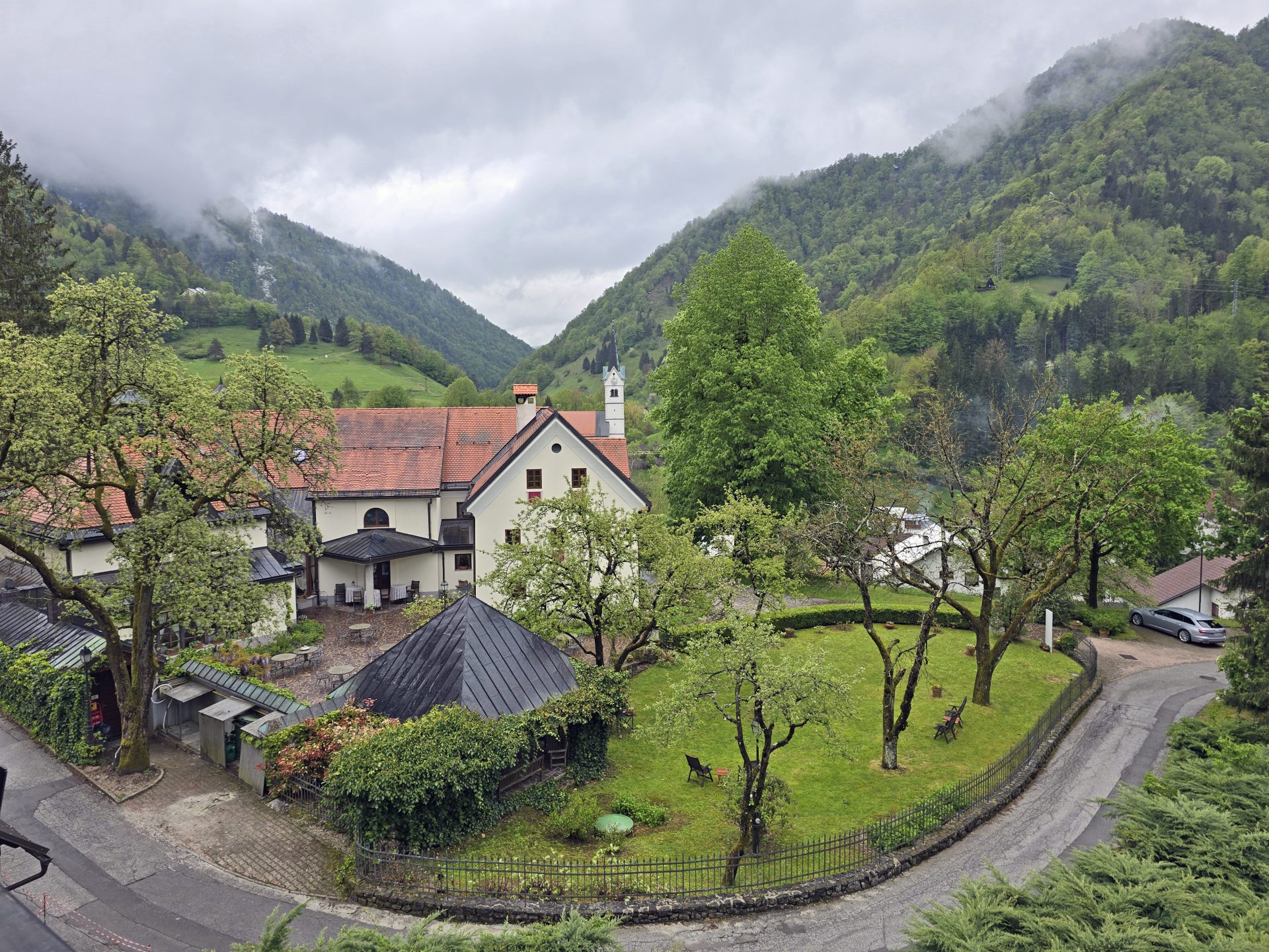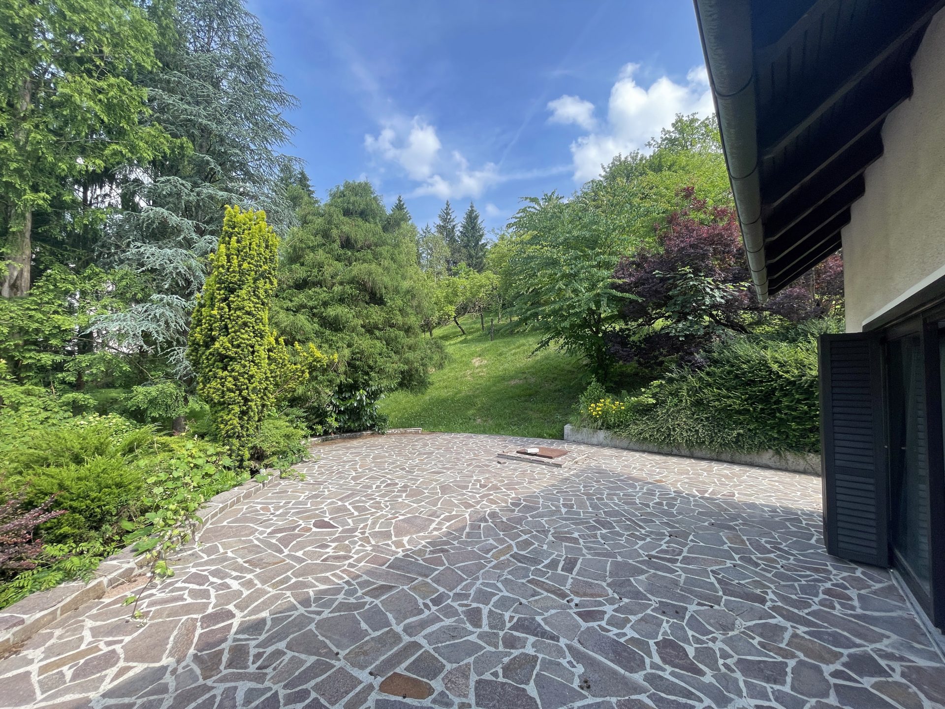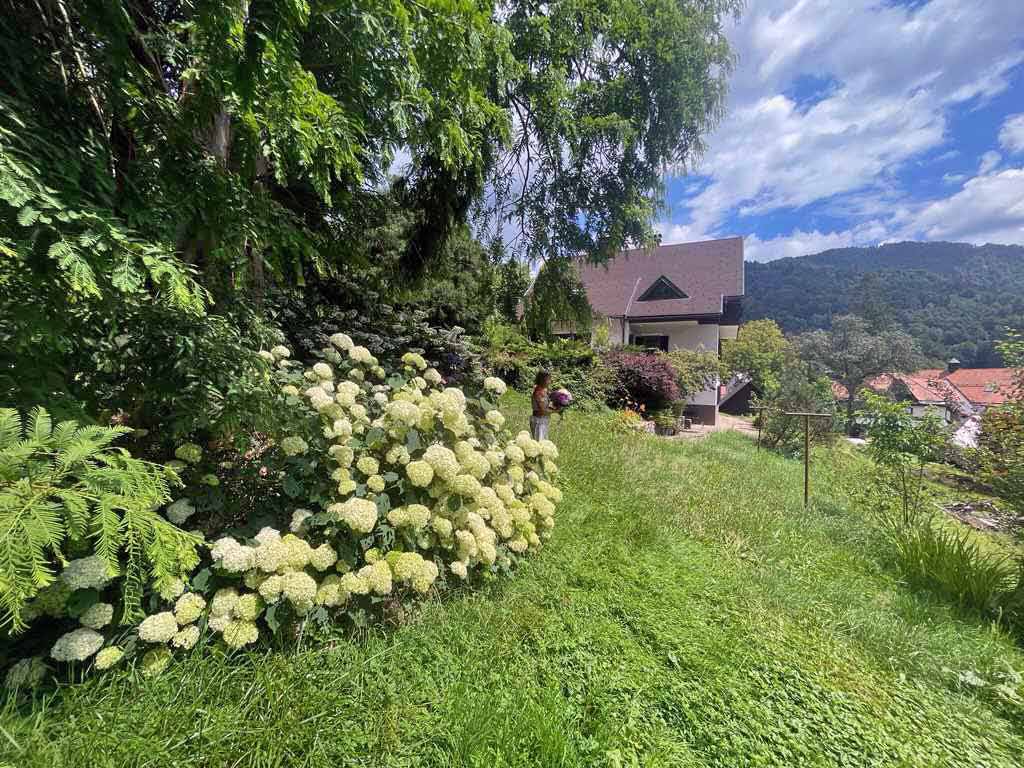 Lepo zasajen in skrbno zasnovan park z rastlinjem ob stavbi zagotavlja mir in zasebnost.