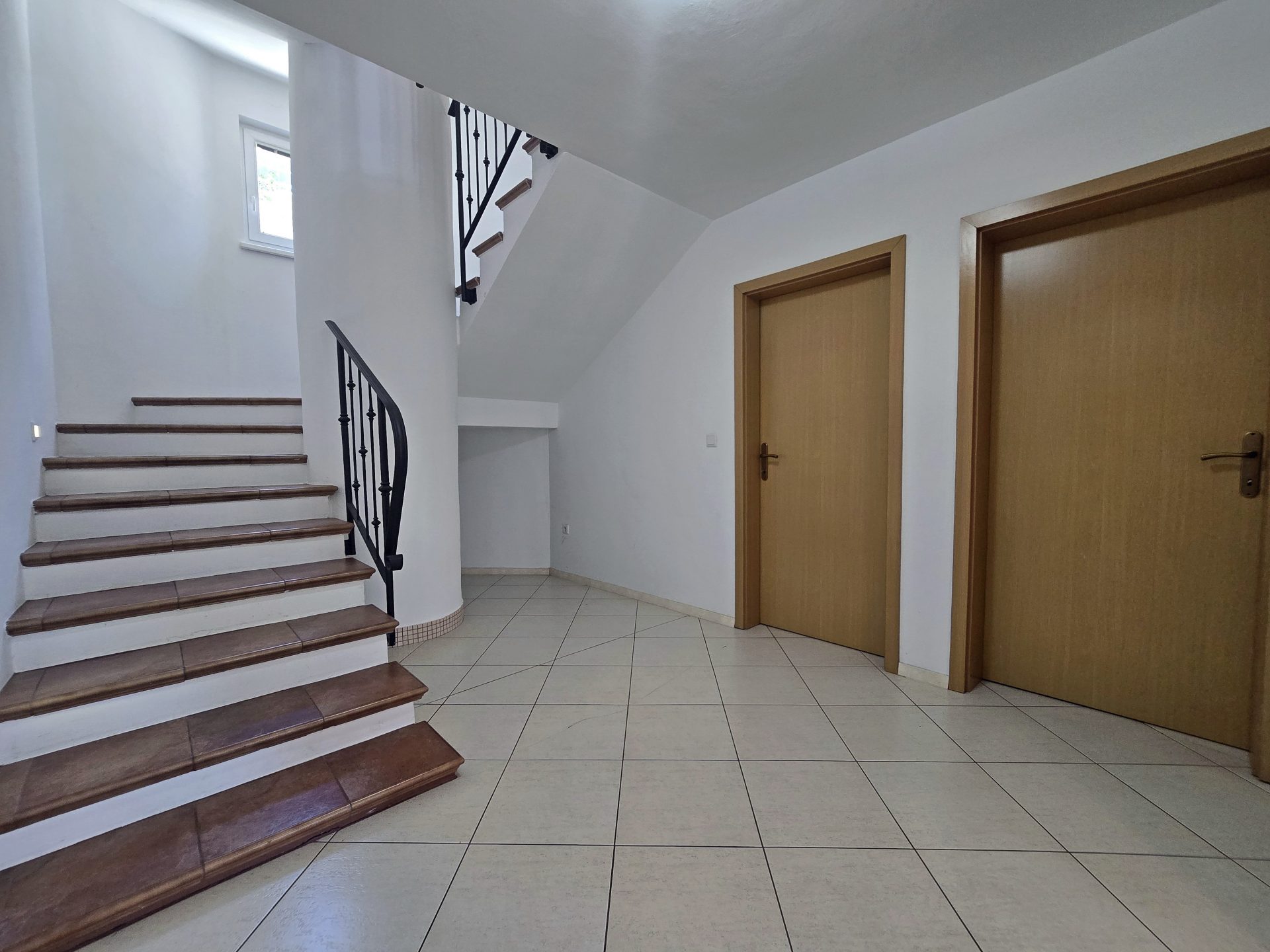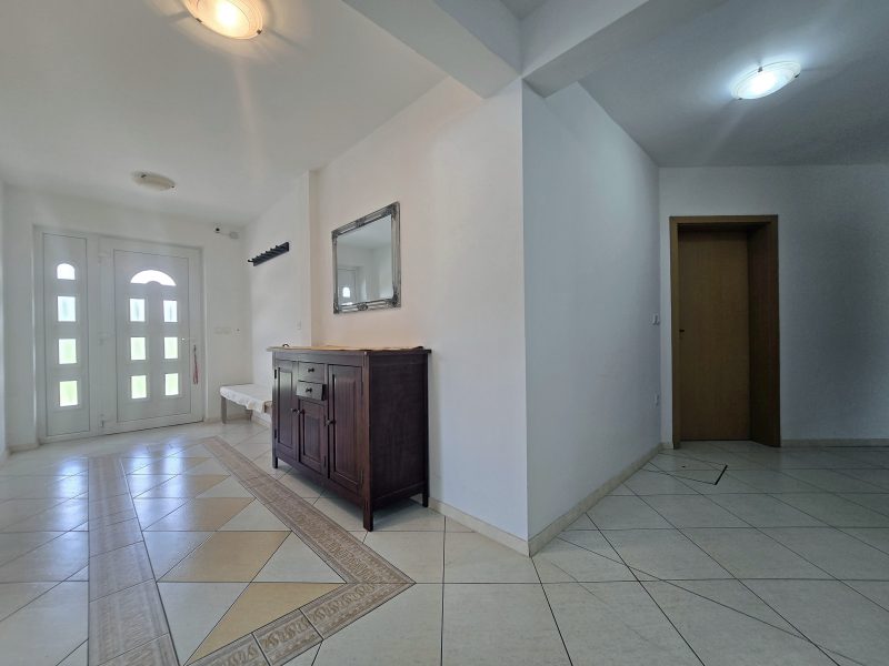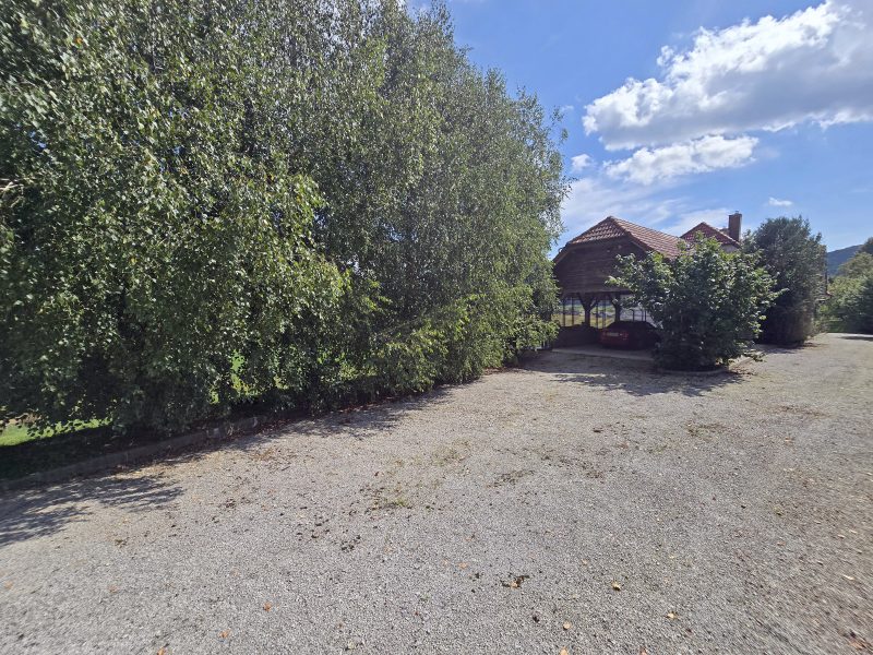 - Poleg hiše stoji velik nestanovanjski objekt, ki vključuje zaprto garažo za dva avtomobila in dodatno pokrito odprto parkirišče za še dve vozili – popolna kombinacija funkcionalnosti in zaščite.