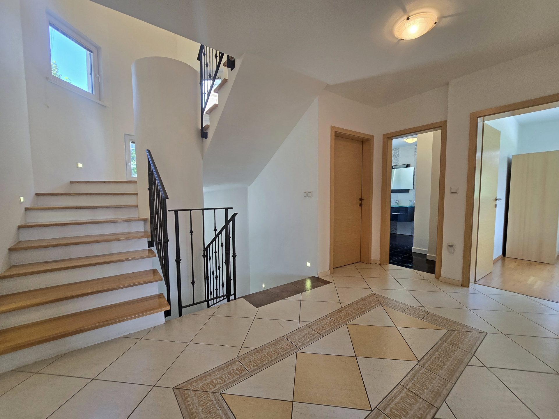 - Kletni del: Elegantna pisarna z razgledom na posest, dve sobi, dve shrambi, kopalnica, kurilnica in prostor za savno. Vsi priključki za wellness (elektrika, voda) so že pripravljeni – odlična priložnost za zasebni wellness center z jacuzzijem in savno.