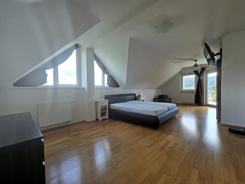 - Mansarda: Glavna spalnica, dve dodatni spalnici, prostoren balkon z razgledom na naravo ter moderna kopalnica.